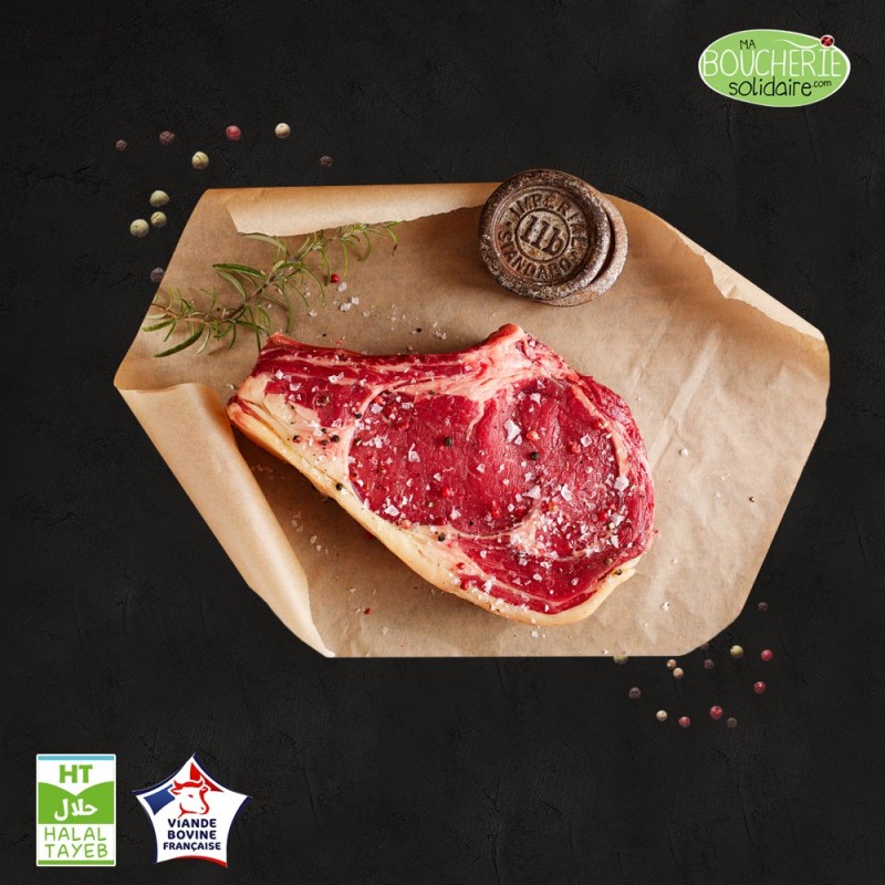 Côte de Bœuf persillée issue d’un élevage traditionnel français (Blonde d’Aquitaine, Limousine ou Charolaise). Sachet sous vide (~1 kg) prêt à griller ou rôtir, pour une viande tendre et savoureuse. Livraison ChronoFresh France.