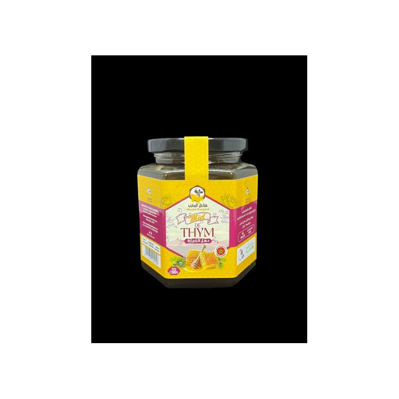 Miel pur de thym aux arômes intenses et herbacés, récolté artisanalement par notre coopérative partenaire au Maroc. Grand format 500g.